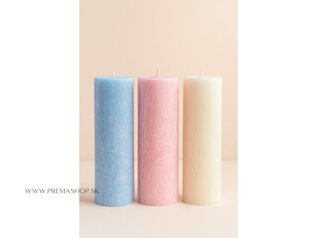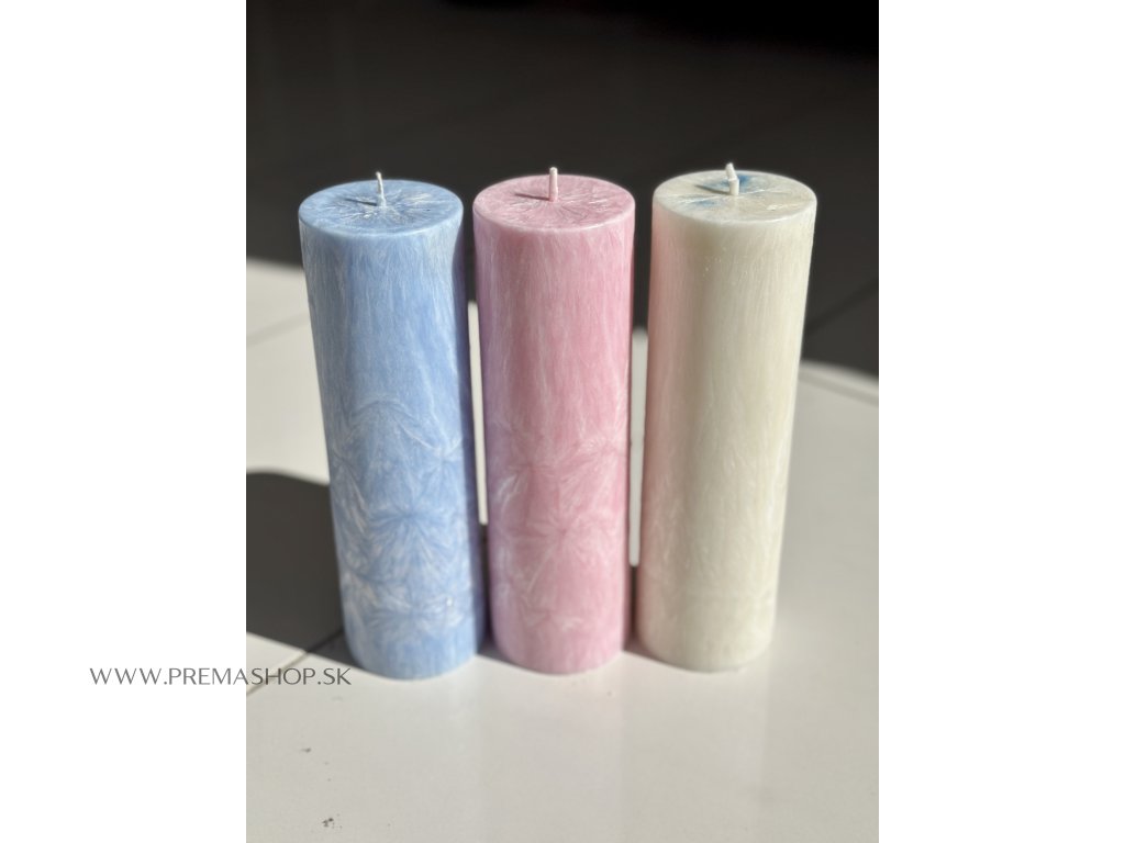 3 ks kryštalických sviec (modrá, ružová, biela)